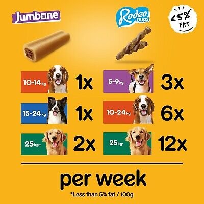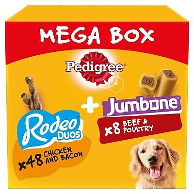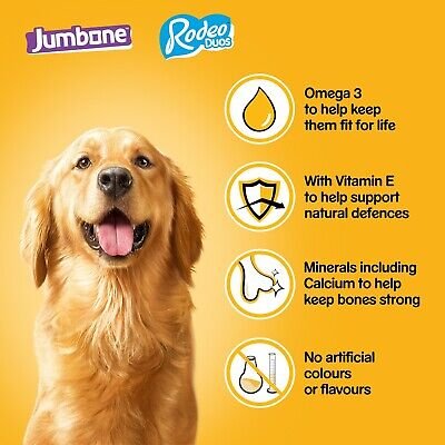 48x PEDIGREE RODEO Duos Chicken & Bacon twists & 8x JUMBONE Beef & Poultry flavour dog chews