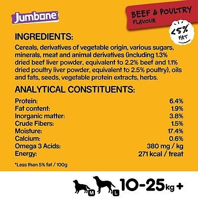 Delicious, low-fat dog treat chews PEDIGREE JUMBONE treats cleverly combine a tough chewy outer with a succulent, tasty centre.