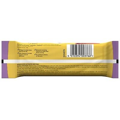 Feeding instructions: Medium dogs (10-24 kg), feed up to 1 chew per week. Each chew provides 7% of the weekly energy requirements of a 10 kg dog. Please reduce main meal accordingly. Not suitable for dogs under 10 kg or puppies under the age of 9 months. Use within 14 days of opening. Fresh drinking water should always be available.