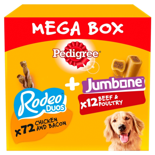 72x PEDIGREE RODEO Duos Chicken & Bacon twists & 12x JUMBONE Beef & Poultry flavour dog chews