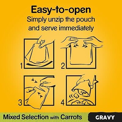 • Wet dog food pouches in easy-to-open pouches, perfect for a fresh healthy meal, on its own or on top of dry dog food