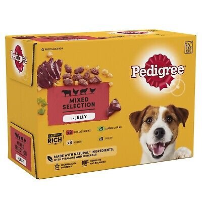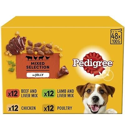 48 x 100g Pedigree Adult Wet Dog Food Pouches Mixed Selection in Jelly
