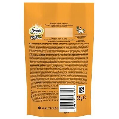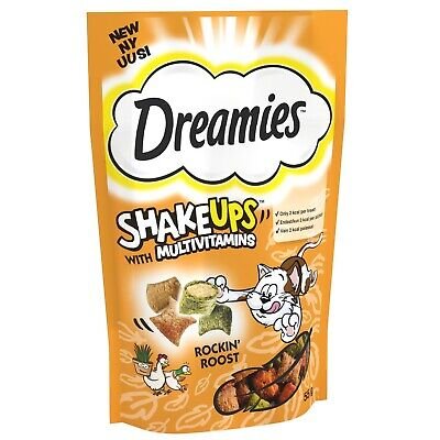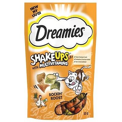 •    DREAMIES SHAKE UPS Multivitamins cat treats contain vitamins and minerals.