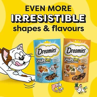 If variety is the spice of life then DREAMIES SHAKE UPS are off the scale! These tasty cat treats combine the irresistibility of a soft inside and crunchy outside with variety in flavours, shapes and colours. They also contain multivitamins so your cat can always be ready for playtime (when not fast asleep!).