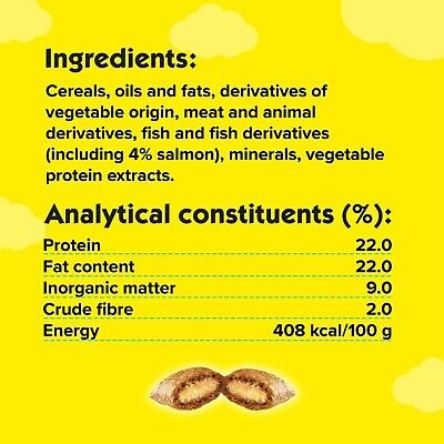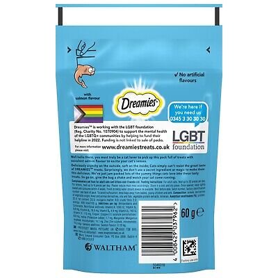 • DREAMIES with Scrumptious Salmon flavour cat treats contain vitamins and minerals & no artificial flavours.