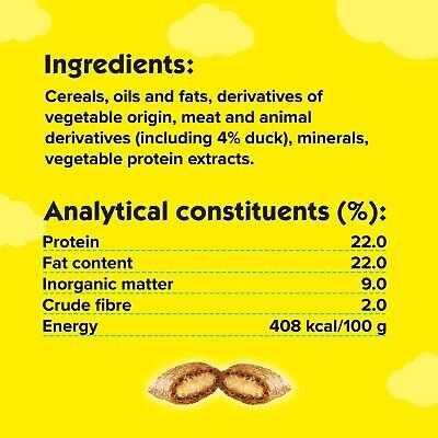 •    DREAMIES  with Delectable Duck cat treats contain vitamins and minerals & no artificial flavours.